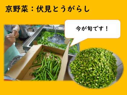 7月16日(木)は,月に1回の特に和食を味わう日の和(なごみ)献立で,麦ごはん・牛乳・あげはもの梅だれぞえ・伏見とうがらしのおかか煮・すまし汁でした。各教室で和献立のビデオをみながら,なぜ京都ではもが食べられることになったのかや,旬の食材などについて学びました。