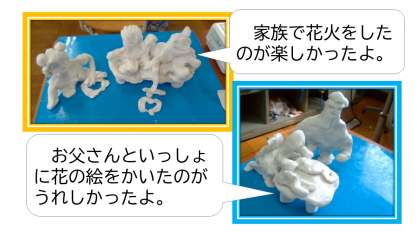 夏休みの間の,楽しかったことや嬉しかったことを ねん土で表しました。