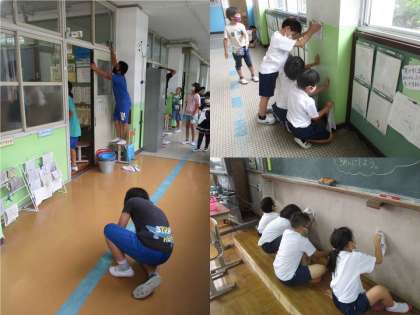 みんなで拭き掃除することで,いつもよりきれいになりました。