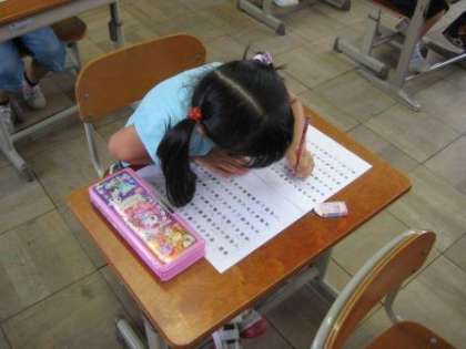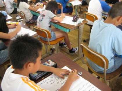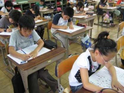 7月1日,1年生を除いて,2年生から6年生まで同じ漢字問題を一斉に行いました。中身は七三独自に作った問題です。当然,2年生の人がまだ習っていない6年生の漢字にもチャレンジします。どの子も意欲をもって挑戦します。