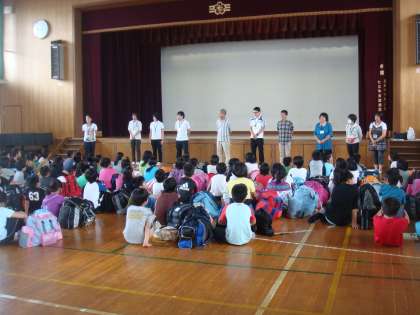 7月5日(火)〜9日(土)まで5年生が花背山の家に73名全員が元気に出発しました。たくさんのお見送りの中,笑顔いっぱいで手を振る5年生。4泊5日の長期宿泊学習を実のある素晴らしい学習にしてほしいと思います。「5分前行動をしよう」「来た時よりも美しく」「明るいあいさつをしよう」「『ありがとう』といわれることをしよう」という4つの約束をしっかり守って,元気に活動してほしいと思います。