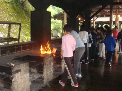 4日目の朝を迎えました。昨日の夜はよく寝た子どもが多かったです。すっきりした顔の子どもたち。今日は,花背山の家の周りのハイキングコースを回ることに変更になりました。