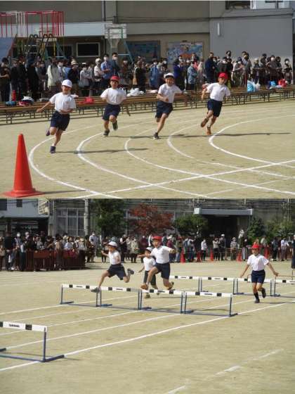 3・4年生は,80m・100m走,バラエティ走・ハードル走,