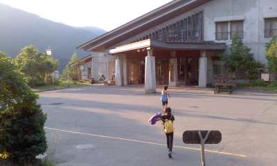 5日間でいろんな体験をした山の家ともいよいよお別れです。山の家はいつまでもあると思いますが,この学年の友だちと一緒に過ごした「山の家」の活動はこのときしかありませんでした。だから,一期一会。山の家の職員の皆さんにも,学生ボランティアの先生にもたいへんお世話になりました。ありがとうございました。