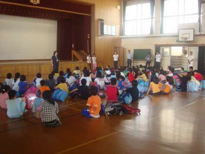 笑顔で学校に帰ってきた子どもたち。充実した活動だったことが一目でわかりました。お迎えにお家の方がたくさんきてくださいました。子どもたちは久しぶりの再会にとてもうれしそうでした。