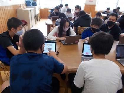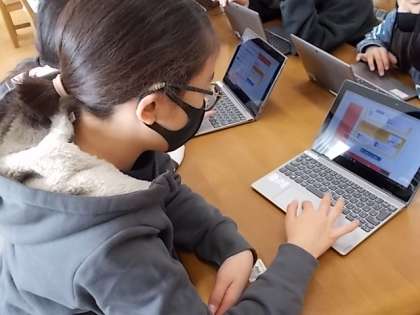 1人1台,GIGA端末を使って「ジュニア京都検定」の過去問題に挑戦です。タブレットを操作しながら,京都の伝統文化について学びます。