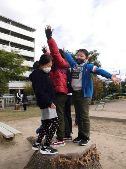 「プラタナスの木」では,登場人物の気持ちの変化を考えました。プラタナスの木に対する気持ちが変わっていったことを読み取りました。石ケ坪公園に,大きな木や切りかぶがあったので行ってきました。物語にあった場面を再現しながら,登場人物の気持ちに共感できたでしょうか。