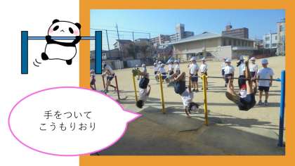 3年生では,体育科で鉄棒の学習を行っています。