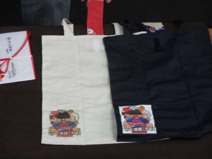 賞状やロゴの入ったエコバッグをいただき,