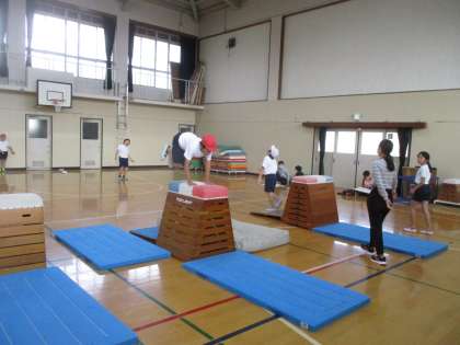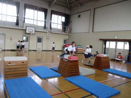 子どもたちは,開脚跳び・台上前転・抱え込み跳びなど,