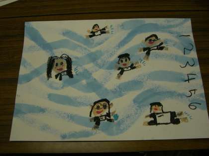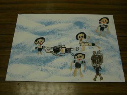 そのあとパスで楽しかったプールのことを思い出して自分や友達を描きました。