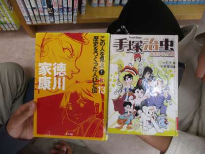 図書室で伝記と好きな本を一冊ずつ借りました。