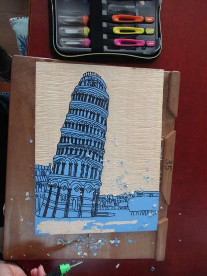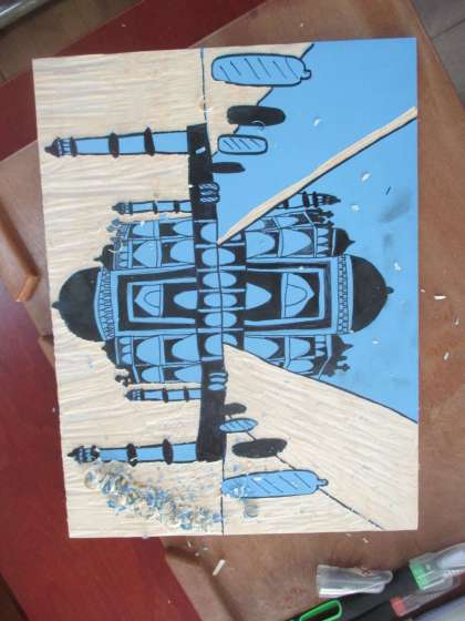 自分が好きな世界遺産の建物を選んで描き,彫っていきます。