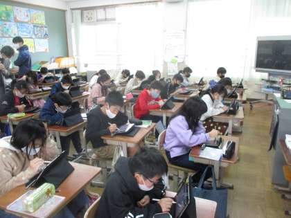 算数の授業でタブレットを使い,デジタルドリルに挑戦しました。