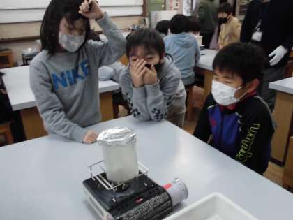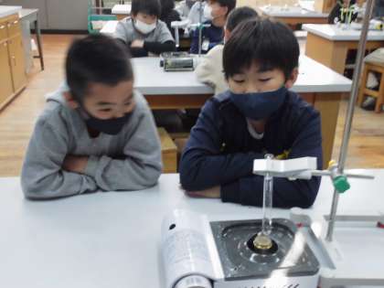 もののあたたまり方の学習では,空気や水などがどのようにあたたまるのか実験しました。予想通りの結果でも喜んでいますが,予想外の結果の時,「えっ?びっくり!」と心が動いているようです。やはり実験は楽しそうです。実験から分かったこと「考察」もだんだんと考えられるようになっています。