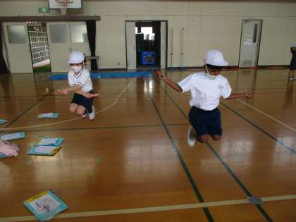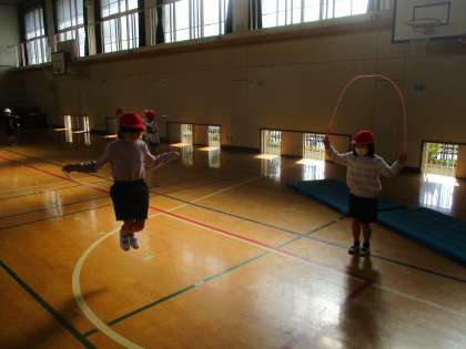 前とび,かけあしとび,あやとびなどから自分ががんばりたい跳び方を選んで練習しました。一生懸命元気いっぱい跳んでいましたよ。