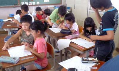 教えることで6年生児童も苦労していました。