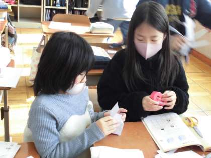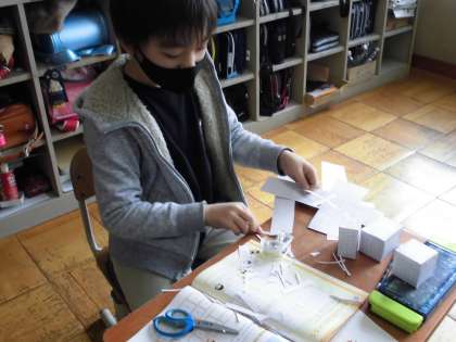 直方体と立方体について学習しています。この単元では,見取り図や展開図の書き方を学んだり,展開図を切って組み立てたりします。身のまわりにも、直方体や立方体はたくさんあると思います。よければ,ご家庭でも一緒に探してみてください。