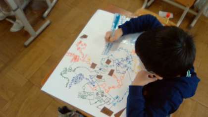 図画工作科では,お話を考えて,すごろくのコースを作りました。