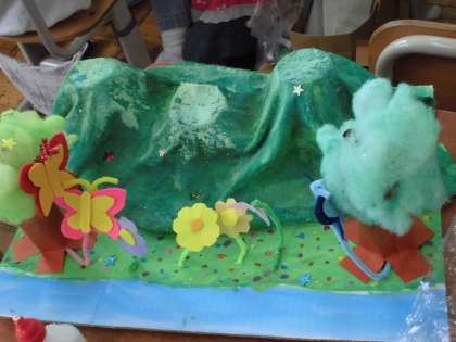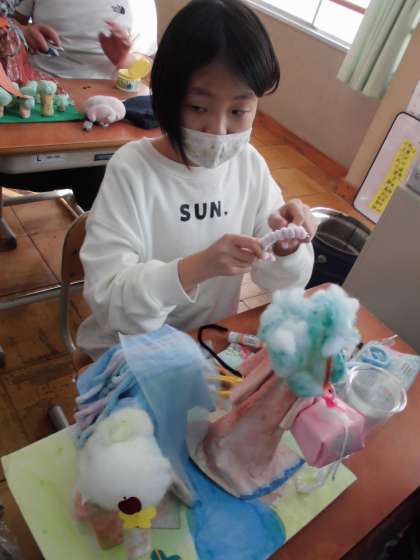 色をつけて,かざりをつけて完成に近づいています。友達の飾りを見て,「これうまいなあ。」と声をかけている人がいました。アイデア賞がいっぱいです。たくさんの準備物を,ご協力いただきありがとうございました。