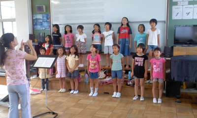 合唱部は昨年の6年生が卒業したあと,人数が減りました。でも,低学年と高学年の人と力を合わせてコンクールに挑戦します。
