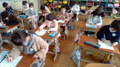 3学期に立てた目標をふり返りキャリアノートに頑張ったことやできるようになったことを書きました。12日(金)に持って帰りますので,1年間頑張ったことを読んでいただき,裏面一番下に温かい励ましのコメントをお願いします。3月17日(水)までに持たせてあげてください。