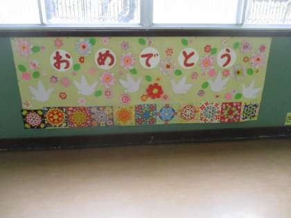 1階廊下には,さくら学級からのおめでとうの気持ちをこめた