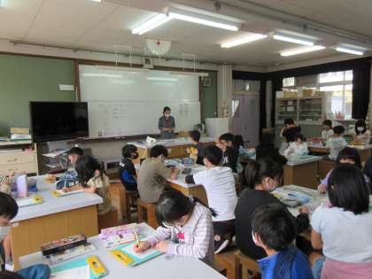 4年生からは理科の専科の先生の授業を受けます。初めて使う理科室には様々な実験器具が並んでおり,新鮮そうな子どもたちでした。