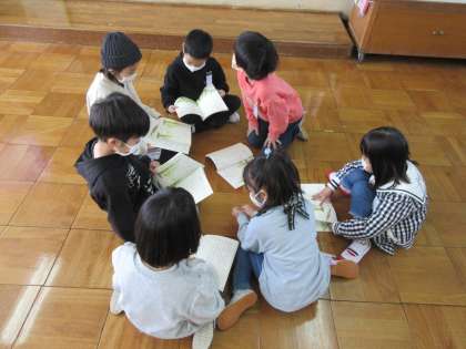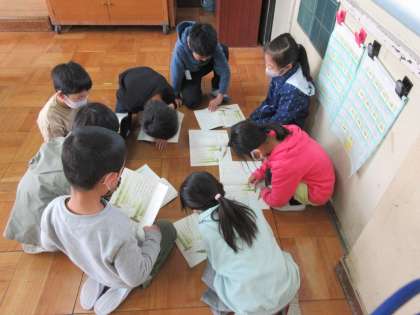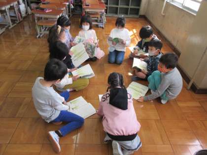 グループの中でナレーター役,ふきのとう役など役割を分担して読んでいきました。