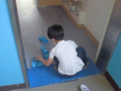 次の人のことを考えて,トイレのスリッパを並べてくれていました。ありがとう!その姿を見ていた先生もうれしい気分になりました。