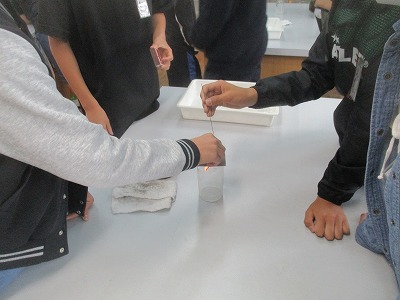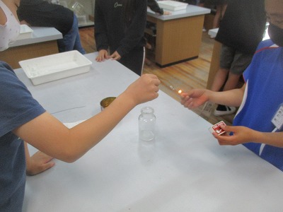 6年生最初の理科の学習では,マッチとろうそくを使った燃焼の実験に取り組んでいます。気体検知器や集気びんなど,今までに使っていなかった器具もたくさん登場しました。最初はこわごわ扱っていましたが,正しく,素早く扱えるようになってきています。これも成長ですね。
