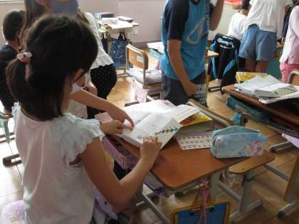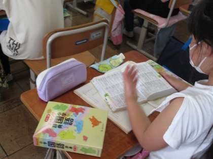 みんな一生懸命,国語辞典に向き合って,調べたい言葉が見つかると,とてもうれしそうな表情をしています。いろいろな場面で意味を調べて,辞典の使い方に慣れたり言葉の世界を広げたりしていきたいと思います。