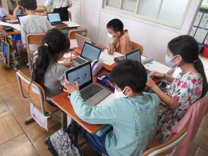 今週は,京都に古くから伝わる年中行事について調べました。グループで協力しながら辞典で調べたり,タブレット(ロイロノート)で行事に関係するご馳走を見たりしました。