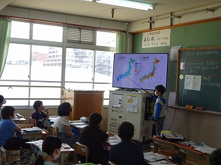 ペアや全体での交流でも資料を根拠に教科書や大型テレビを指しながら,みんなで確かめました。