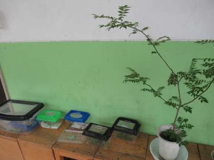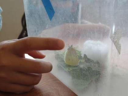 日に日に大きくなったり次の日には体の色が変わっていたりする幼虫や,虫かごのかべに上手にくっついているさなぎに,みんな興味津々…。先週,さなぎになったアゲハがいつ成虫になるのか,みんな楽しみにしています。