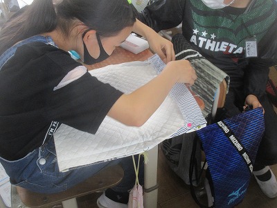 ミシンを活用して,ナップザックを作っています。