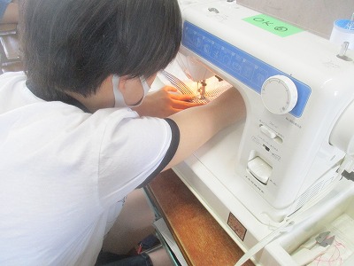 待ち針を打って,しつけ縫いをする時は玉止めと玉結び,ミシンは返し縫いを忘れずに・・・と,これまでの学習がすべて生きてきます。