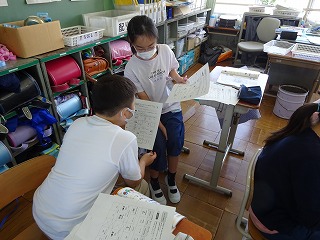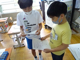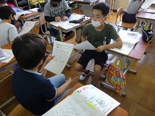 たくさんの単語が出てきますが,繰り返し聞き,声に出すことで自信をもってやり取りができる子が増えてきています。