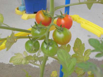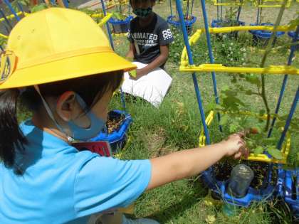 赤くなるのを楽しみに,観察したり収穫したりしています。1本の苗から,いくつ収穫できるのでしょうか。「おうちにもって帰って,サラダにしよう。」「妹がトマトが好きだからプレゼントしよう!」と子どもたちもわくわくが伝わってきます。