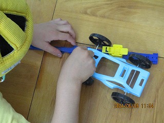 風の力,ゴムの力で動く車を作りました。