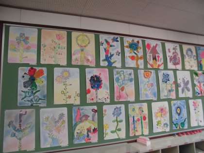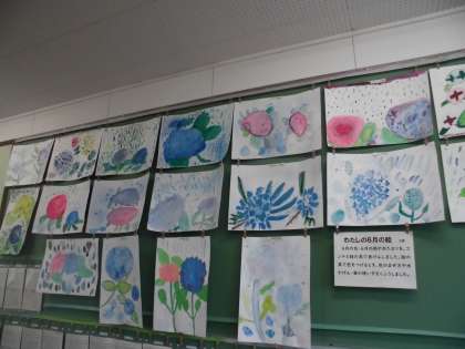 教室には子どもたちの素敵な作品が掲示されています。梅雨らしい雨の日が続いていますが,子どもたちの作品のおかげで教室内はいつも晴れです。
