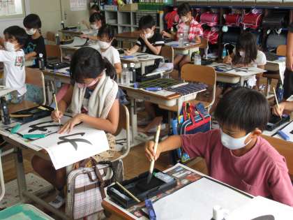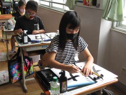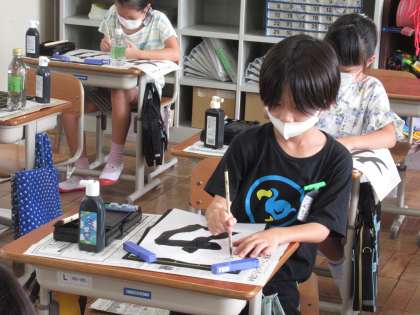 2学期初めての毛筆は,折れとはねの筆づかいに気を付けて「力」という文字を書きました。久しぶりの毛筆ですが,筆の持ち方や始筆にも注意して,丁寧に書くことができました。