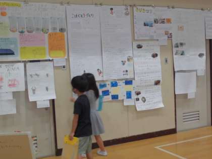 自由研究展を見に行きました。「これすごい!」「どんな作品なのかな。」と興味深くじっくり見ていました。テーマやまとめ方なども来年に向けて参考になったかと思います。