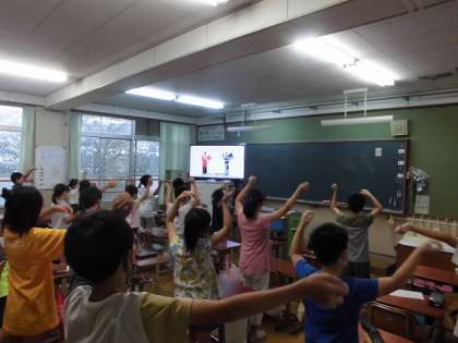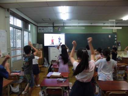 昨日・今日と雨で,ハードル走の練習ができませんでした。教室で,スポーツ大会で踊る「よさこい鳴子おどり」を映像を見ながら初めて踊ってみました。みんななかなか踊る気満々でした。