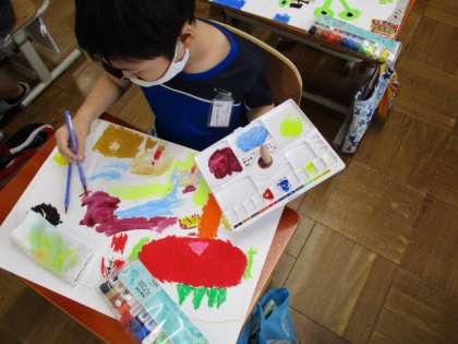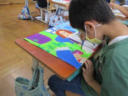 活動の様子も紹介します。集中して絵の具をぬっています!!