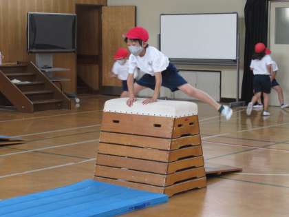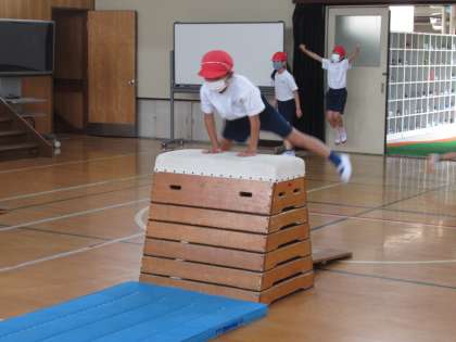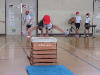 体育科では,マット運動に続きとびばこ運動に取り組んでいます。今週は,2年生までに学んだことを思い出しながら,縦向きや横向きのとびばこを使って開脚跳びの練習をしました。力強い踏み切りや安全な着地も意識しながらがんばりました。来週は,台上前転など新しい跳び方にもチャレンジしたいと思います。