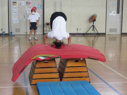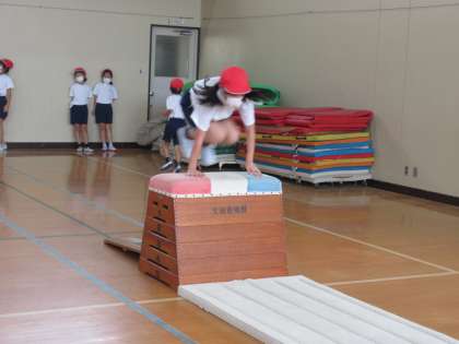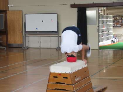 先週に引き続き,今週も「とびばこ運動」に取り組んでいます。今日は「ねらい2」を中心に練習しました。いろいろな練習の場を使いながら,台上前転やかかえこみ跳びにチャレンジしていました。
