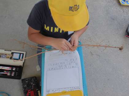 大切に育ててきて,夏の間たくさん実をつけたミニトマト。今日,茎をぬいておわかれしました。茎や葉の様子がどのように変わったのか観察しました。「はっぱがパリパリしている。」「根っこは,こんな風になっていたのか。」「茎の中は,白くなっている。」「今日はトマトのお別れ会。ありがとう。」といろいろな声が聞こえました。