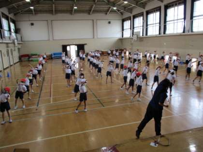 スポーツ大会に向けて,学年のみんなでリズムダンスを練習しました。