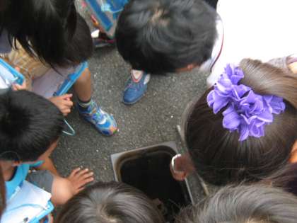 写真は消火栓をあけてもらった時の写真と説明を受けている写真です。